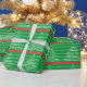 Este documento de envoltura está diseñado con el patrón de Árbol de Navidad escrito "Feliz Navidad Feliz Año Nuevo".