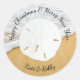 Dólar arena, Navidades de playa sello para sobres con personalizado, frases curvadas arriba y abajo. Coloca un saludo de vacaciones preferido en la parte superior con nombres, fechas u otros, en la parte inferior en negrita. La arena y las olas son el telón de fondo.