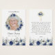 Navy Blue Floral Gold Photo Sympathy Prayer Cards