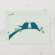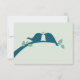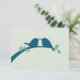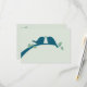 Tarjeta verde pálido con aves amorosas azul marino.