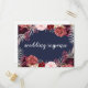 Postal RSVP de la boda de la marina de Marsala - presenta un fondo azul marino con varias peonías, rosas y otros elementos florales en tonos de Marsala, burdeos, rosa azul, gris y más. Haga que sus huéspedes respondan a su solicitud RSVP a través de esta opción asequible: elija entre mate o semigloss. Vea la colección coincidente de esta página para completar la búsqueda del evento.
