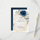 Tarjeta de respuesta de boda floral azul marino oscuro con elegante ramo de azul marino, azul real, blanco, dorado, champán marfil, rosa color rosa, flor de ranunculo y hojas de eucalipto verde salvia y elegante acuarela con marco geométrico de lentejuelas redondas. Por favor, contactame para cualquier ayuda en personalización o si necesitas algún otro producto con este diseño.