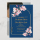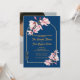 Elegant Navy Blue Magnolia Wedding Invitation with Gold Arch & Photo Back.
