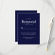 Tarjeta de respuesta RSVP de boda simple de la marina. Cena y baile.