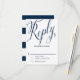 Elegante y moderna tarjeta RSVP de boda con un caprichoso guión de caligrafía en un patrón de navío y rayas. Forma parte de una suite boda. Hay otros colores y elementos coincidentes disponibles en mi tienda.