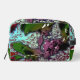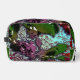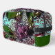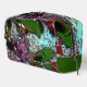 Neceser con una rama de acebo con bayas moradas en relieve con efecto metálico sobre un fondo abstracto con motivos florales.