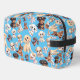 Un lindo diseño de patrón de Perro Cachorro con ilustraciones acuarelas de diferentes razas de perro como , Dalmatian, Pastor Alemán, Bulldog, Pug, Poodle, Español. Con un fondo azul. Un gran paquete de accesorios divertidos para artículos de mascota o como una bolsa de cosmética/maquillaje para los amantes del perro.