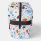Seamless watercolor pattern featuring cupcakes strawberries chocolate pieces heart cookies flowers and envelopes with hearts illustrated in a playful hand drawn style on a light blue background