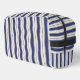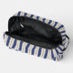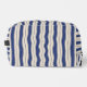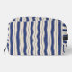 Un clásico con un toque, brizna y fresco, la obra original de ZoeSPEAK en este Dopp Kit es un patrón general de rayas azules y blancas oscuras, algo anchas y algo delgadas. En el centro del diseño, las rayas son onduladas, rebosantes de agua, lo que le da al tejido un aspecto ya "revuelto".
