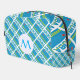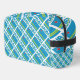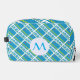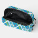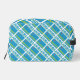 En este Dopp Kit se muestra un diseño de baldosas con la bandera o bandera de Aruba. Un círculo redondo, fractal, de cuadrados blancos squiggly tiene un lugar para una inicial para que puedas personalizar con un monograma. Excelente para viajeros. Puede hacer su viaje mejor ayudando con sus necesidades de embalaje.