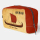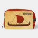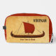 Un barco largo de Viking con una vela roja vista de perfil desde el lado derecho. Se superpone a una imagen de fondo de papel antigua y aparece el texto "VIKINGAR" (Vikings). Personalizar agregando su propio texto adicional.
