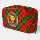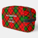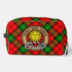 Insignia escudo de Clan Kerr rodeada por una correa y hebilla sobre el fondo del tartán. Texto personalizado en ambos lados.