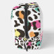 Un colorido diseño de animales salvajes con tigre, león en tonos rosados y verde azulados. En este diseño se presentan hojas tropicales coloridas y manchas animales coloridas para crear un aspecto de moda. Arte moderno con animales bonitos y vegetación tropical.