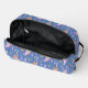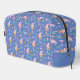 Viajá con estilo de cuento de hadas con este encantador neceser personalizado. Esta duradera bolsa de viaje presenta un simpático conejo de color rosa claro tocando una trompeta, rodeado de mariposas púrpuras, corazones sonrientes y delicadas flores silvestres. Contra un sereno fondo azul de aciano, el diseño está centrado con un marco crujiente con ribetes rosados para tu monograma y nombre personalizados.