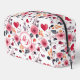 Los encantadores rosas y corazones rosados diseñan una bolsa de artículos de aseo. El diseño presenta un patrón impecable de flores de rosa floral acuarela y corazones rosados profundos. Sólo hay que añadir iniciales para un regalo monogramado para hacer una elegante bolsa de maquillaje o un neceser. Ideal para bodas o día de San Valentín