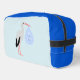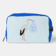Esta impresionante bolsa de cosméticos presenta una imagen gráfica de una cigüeña blanca linda con plumas de cola negra sujetándose a un paquete azul pálido de mantas. Hay un texto azul en el bulto que dice "Baby Boy". Este diseño es perfecto para celebrar a un bebé.