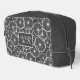 Stylish grey Dopp Kit bag patterned with a bicycle wheel pattern. On the front of the bag is a space to add your initials. Fabulous useful gift idea for cyclists.