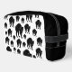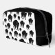 Bolsa de equipaje para kit Dopp de artículos de aseo con estampado de gato negro al acecho de Halloween en todo el estilo de accesorio de moda declaración impresa con dibujo de silueta de gato negro gráfico dibujado a mano ilustración diseño por TheFabricSeal tienda de impresión bajo demanda en Zazzle.com #ZazzleMade ©️Original. https://www.zazzle.com/store/thefabricseal