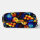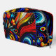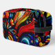 Una elegante bolsa de maquillaje con un colorido diseño abstracto, ideal para mantener sus cosméticos organizados y fácilmente accesibles.