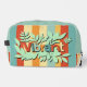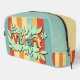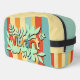 Un diseño audaz y vibrante con hojas tropicales sobre un fondo retro-rayado. La palabra "vibrante" destaca con un efecto 3D de diseño y atractivo