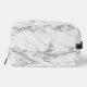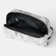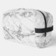 En este elegante kit de dopp se encuentra un patrón de mármol blanco y plateado clásico con corrientes purpurinoso de plata para un telón de fondo con un elegante diseño de flores de loto plateadas donde en la parte delantera se puede personalizar con un nombre o logotipo creando un ambiente zen.