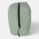 Una bolsa de inodoro verde sabio con una textura falsa de cuero impreso. Cuenta con un anillo de margarita floral con espacio para su nombre. Make es un regalo encantador del Día de la Madre para tu madre o abuela