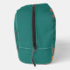 A whimsical pattern featuring leaping brown rabbits surrounded by yellow, pink, and red flowers, green leaves, and dotted accents on a teal background.