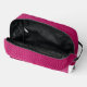 Descubra nuestra elegante bolsa de artículos de tocador con una vibrante textura de imitación de piel de fucsia. El patrón grabado en relieve con formas orgánicas y elevadas ofrece un diseño dilatado y llamativo, realzado por el contraste alto e incluso la iluminación que resaltan su profundidad y su gradiente suave. Perfecto para viajes organizados y de moda.