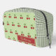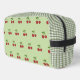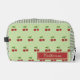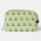 A pretty green and red cherry pattern gingham toiletry bag with a simple stripe design. This cute, trendy, and elegant cosmetic case is perfect for her, your daughter, or as a modern back-to-school essential. A feminine, girly pastel bag for spring and summer.