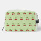 A pretty green and red cherry pattern gingham toiletry bag with a simple stripe design. This cute, trendy, and elegant cosmetic case is perfect for her, your daughter, or as a modern back-to-school essential. A feminine, girly pastel bag for spring and summer.