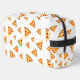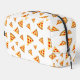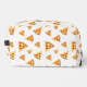 Guay y las rebanadas de pizza divertidas patrón bolsa de artículos de aseo blanco. Bolsas de accesorios de moda de Guay para todos. Regalo de pizza único para comida, restaurantes, pizzerías... Jugoso vector pizza hecha con costra crujiente, queso, salami, champiñones, aceitunas y una rociada de orégano.