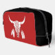 Los kits dopp de danza del fantasma rojo son bolsas de artículos de aseo para nativos estadounidenses, vaqueros y vaqueras, occidentales, fans occidentales y aquellos que admiran el espíritu de los búfalos estadounidenses. Red Ghost Dance Buffalo es arte original Steamy Raimon.