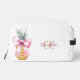 Un fondo blanco elegante decorado con un lazo rosa y una piña. Personaliza y añade un nombre y las iniciales de tu monograma.