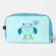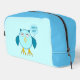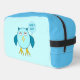 Esta impresionante bolsa de cosméticos tiene un lindo personalizado de un búho azul con ojos somnolientos, un pico abierto y lindas plumas esponjosas. El búho sostiene un globo azul en polvo. Hay un texto azul pálido en el globo que dice "Niño chico". Este es el regalo perfecto para celebrar a un bebé.