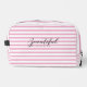 Add a touch of elegance to your daily routine with our light pink and white striped toiletry bag.