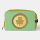 Esta impresionante bolsa de cosméticos presenta una imagen gráfica de una moneda de oro con dos tonos de oro. El círculo exterior tiene una textura áspera. Dentro del círculo interior de la moneda hay un shamrock dorado texturado compuesto por 3 hojas y un tallo.