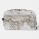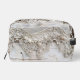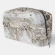 Esta bonita bolsa de artículos de aseo cosméticos tiene una impresión de tablas rústicas de madera con un remanso de encaje floral antiguo. ¡Una divertida adición a tu equipo de viaje!