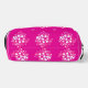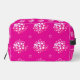 This cosmetic bag features a vivid magenta background decorated with soft white and blush‑pink circular dot clusters, creating a dynamic, contemporary geometric motif.