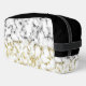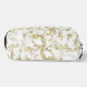 Bolsa de accesorios impresa de oro de mármol blanco negro brillante. Los destellos de oro de mármol blanco y negro brillan. Elegante textura de mármol blanco y negro con acento de copos espumosos purpurinas dorados. *foto de chispas, ¡no purpurina real!