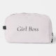 En esta bolsa cosmética mínima es un elegante diseño de flor de loto plateado donde en la parte delantera se puede personalizar el frente con un nombre o logotipo o mantener como está con la palabra jefe chica