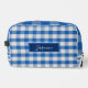 Monograma de nombres personalizados Dopp KIT Este exclusivo diseño de Dopp Kit es llamativo y elegante. El fondo es un fondo abstracto de un fondo azul clásico. La parte frontal muestra su nombre personalizado o texto corto en un guión blanco elegante en una banda azul coincidente. Todos los colores de este diseño se pueden personalizar y puede personalizar aún más la bolsa con su elección de tipo de letra en el área de herramientas de diseño.