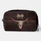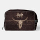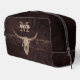 Este rústico bolso de cosmética y artículos de aseo de cráneo de toro presenta un moderno monograma de textura antigua de vaquero del oeste del país. Personalizar de esta fresca casa de campo beige de color marrón inspiró el arte de estilo antiguo del oeste silvestre. Moderno diseño de animales de granja vintage. Derechos de imagen de Marg Seregelyi Photography.
