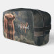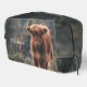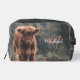 Fotografía del campo de hierba de ternera de vaca de la región montañosa del otoño. Impresionante ternera joven de ganado escocés de tierras altas en un campo de hierba otoñal con colores apagados. Hermoso abrigo naranja peludo oscuro que contrasta con el césped verde claro amarillo y los árboles en el fondo. Monograma personalizable por personalizado con su nombre e inicial a la izquierda.