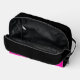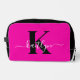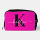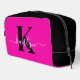 Este sencillo y elegante bolso de tocador rosa caliente y negro con tu primer nombre en un tipo de letra de guión a la moda en blanco y tu primera inicial en un moderno tipo de letra en negro es perfecto para ti. Es de diseño y a la vez muy clásico. Será fabuloso para la escuela, el gimnasio, el trabajo, tu auto - hará que tu maquillaje o artículos de aseo estén en un solo lugar cuando estés lejos de casa.