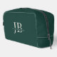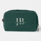 Un elegante look clásico en verde oscuro y beige marfil, este neceser personalizado es un regalo maravilloso para ti mismo. Tiene grandes iniciales de monograma para personalizar con sus iniciales deseadas y también el nombre escrito en la elegante cara de tipo serif. Es una gran opción para viajar u organizar sus productos de aseo en casa.
