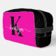 Este sencillo y elegante bolso de tocador rosa caliente con tu primer nombre en un tipo de letra de guión moderno en blanco y tu primera inicial en un moderno tipo de letra en negro es perfecto para ti. Es de diseño y a la vez muy clásico. Será fabuloso para la escuela, el gimnasio, el trabajo, tu auto - hará que tu maquillaje o artículos de aseo estén en un solo lugar cuando estés lejos de casa.
