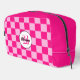 Kit de retro geométrico retro monograma rosa cálido de color rosa claro. Accesorio de moda Guay Bolsa cosmética para chicas. Patrón cuadrado geométrico retro de Guay. Baldosas de época rosa caliente y negro rosa claro moderno. Crea una bolsa única y personalizada con un toque personalizado! Monograma moderno con tu inicial y tu nombre para ese toque personal extra.