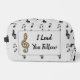 "I Lead You Follow" es el sentimiento en esta bolsa que presenta un patrón negro de notas musicales y un símbolo de arpa dorada. El texto aparece a ambos lados de esta bolsa de viaje y se puede personalizar fácilmente si lo desea. Diseño original - C. McGouldrick