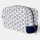 A clean and elegant geometric pattern featuring navy blue petal shapes arranged in a symmetrical design on a white background. This minimalist decorative motif adds a modern yet timeless touch to stationery, home décor, and personalized products.