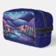 Bolsa de artículos de aseo con un bonito ilustracion. Una vibración caprichosa y fantasiosa. Un hermoso paisaje arbolado, montañoso y un río sinuoso. Vibra mística.